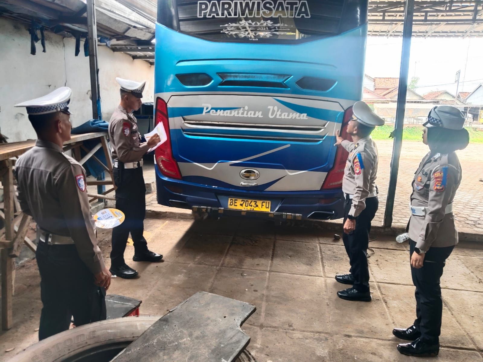 Satgas Preemtif Polres Lampung Timur Lakukan Ramp Check Kendaraan Bus Angkutan Penumpang
